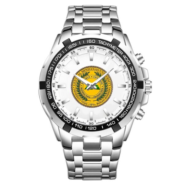 A Crafted Unisex Watch of Stainlesss Steel Showcasing your School Logo. Celebrate your connection to your Alma Mater with this distinguished watch.