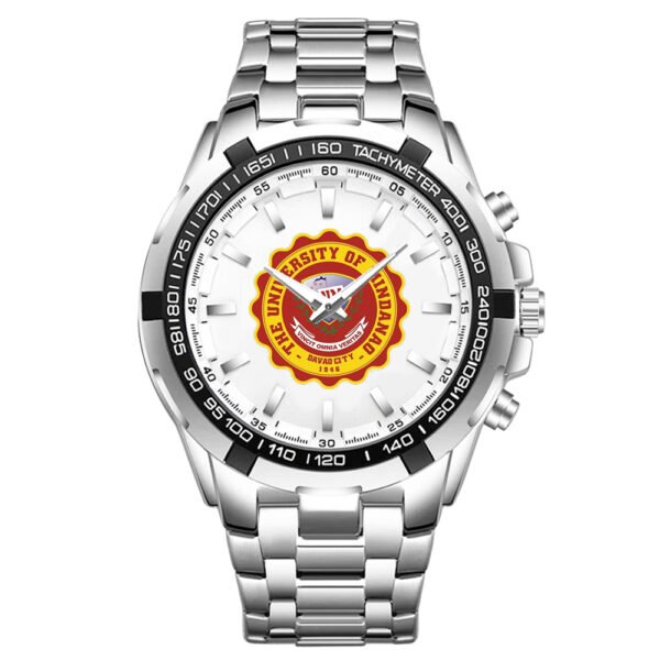 A Crafted Unisex Watch of Stainlesss Steel Showcasing your School Logo. Celebrate your connection to your Alma Mater with this distinguished watch.